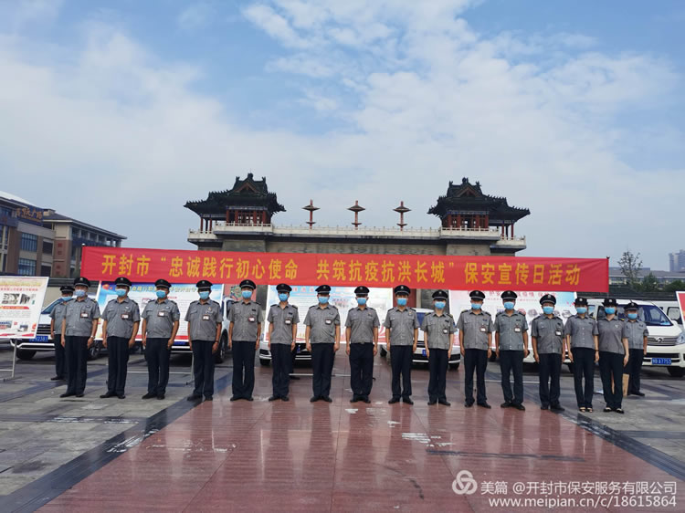 2020年7月24日上午,開封市保安服務(wù)有限公司按照開封市公安局的部署,在金明池廣場(chǎng)積極組織開展全國保安行業(yè)“忠誠踐行初心使命、共筑抗疫抗洪長城”為主題的宣傳活動(dòng)。