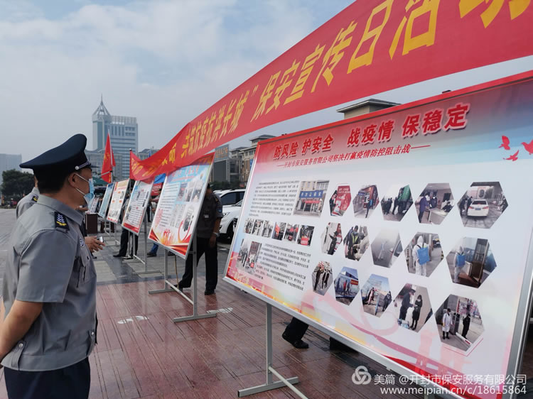 活動(dòng)現(xiàn)場(chǎng),公司通過設(shè)置展板、張貼宣傳標(biāo)語、拉橫幅、發(fā)放宣傳頁、播放專題短片、現(xiàn)場(chǎng)接受群眾咨詢等形式進(jìn)行宣傳,向社會(huì)各界展現(xiàn)公司發(fā)展成就、保安員風(fēng)采、保安員參與重大安保和疫情防控、搶險(xiǎn)救災(zāi)、協(xié)助配合公安機(jī)關(guān)打擊犯罪和維護(hù)治安等方面的典型事跡等。