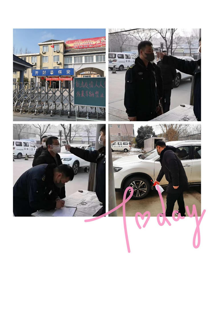 1、加強安全管理責任。切實履行職責使命,全員排查并填報《開封市保安服務(wù)有限公司在職職工新型冠狀病毒感染肺炎疫情防控排查表》,及時掌握在職職工、配偶、子女及其親戚的健康狀況。建立每日報告制度、24小時值班制度、登記制度、信息上報等,全力做好疫情防控工作。