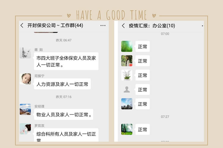 春節(jié)期間,孫國杰總經(jīng)理、李梅副總經(jīng)理等領(lǐng)導多次深入基層督導疫情防控工作,教育引導保安員提高文明素質(zhì),增強防控意識,做好自我防護。并利用微信工作群對疫情防控工作進行再部署、再安排、再要求。要求各級管理人員要把疫情防控作為當前*大的政治任務(wù),切實履職擔責,認真抓好疫情防控工作,做到全員宣傳到位、措施到位、防控到位。
