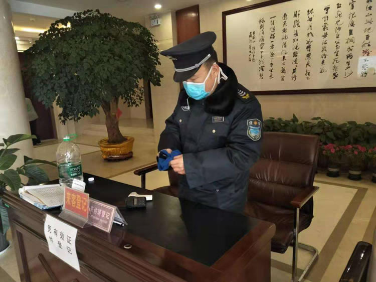 保安隊伍嚴把客戶單位人員和車輛出入關(guān),對進入值勤區(qū)域的人員進行體溫測量、登記、和車輛消毒,配合客戶單位對辦公場所等公共區(qū)域進行消毒防控,做好安全防護措施。